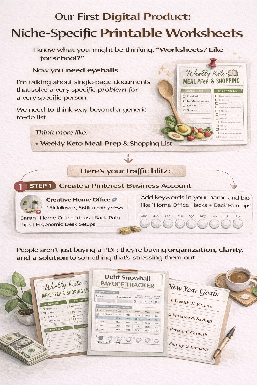 Alright, let’s kick things off with our first digital product: Niche-Specific Printable Worksheets. I know what you might be thinking. “Worksheets? Like for school?” Not exactly. I’m talking about single-page documents that solve a very specific problem for a very specific person. We need to think way beyond a generic to-do list. Think more like a “Weekly Keto Meal Prep & Shopping List,” a “Debt Snowball Payoff Tracker,” or a “New Year Goals” worksheet. The secret sauce here is specificity.