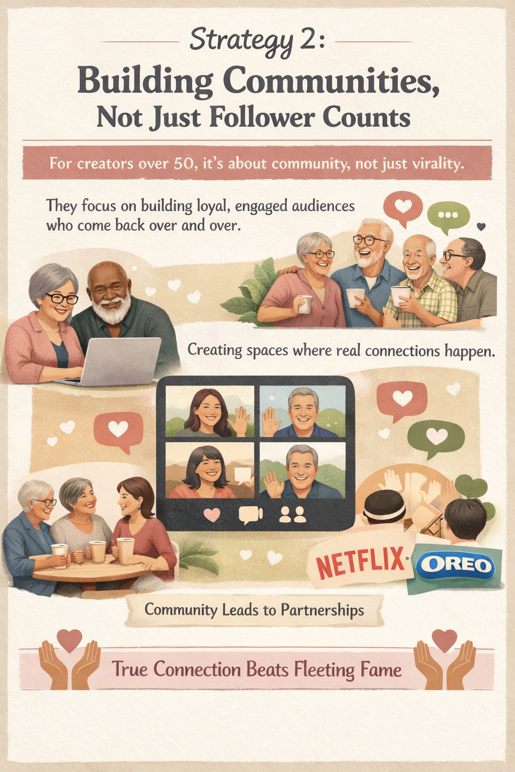 Look at The Old Gays—they didn’t just go viral, they built a community. And that community led to partnerships with Netflix and Oreo. True connection with an audience always beats fleeting fame.