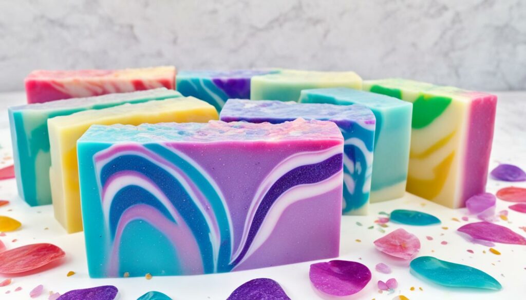 Get creative with melt and pour soap making! Try layering different soap colorants for eye-catching effects. Picture soaps with vibrant ombre or bold colors. This easy method turns your soaps into art.